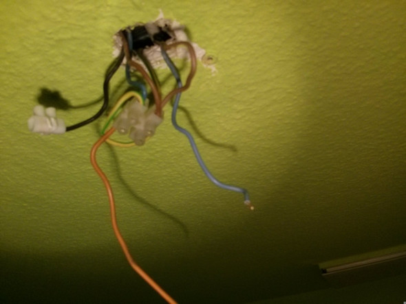 Aus der Decke hängen meistens drei Kabel, manchmal auch nur zwei.