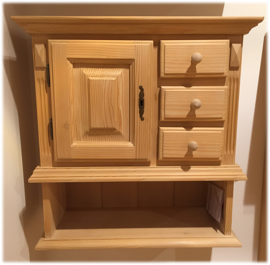 Der Schrank wird als Hängeschrank an der Wand befestigt.